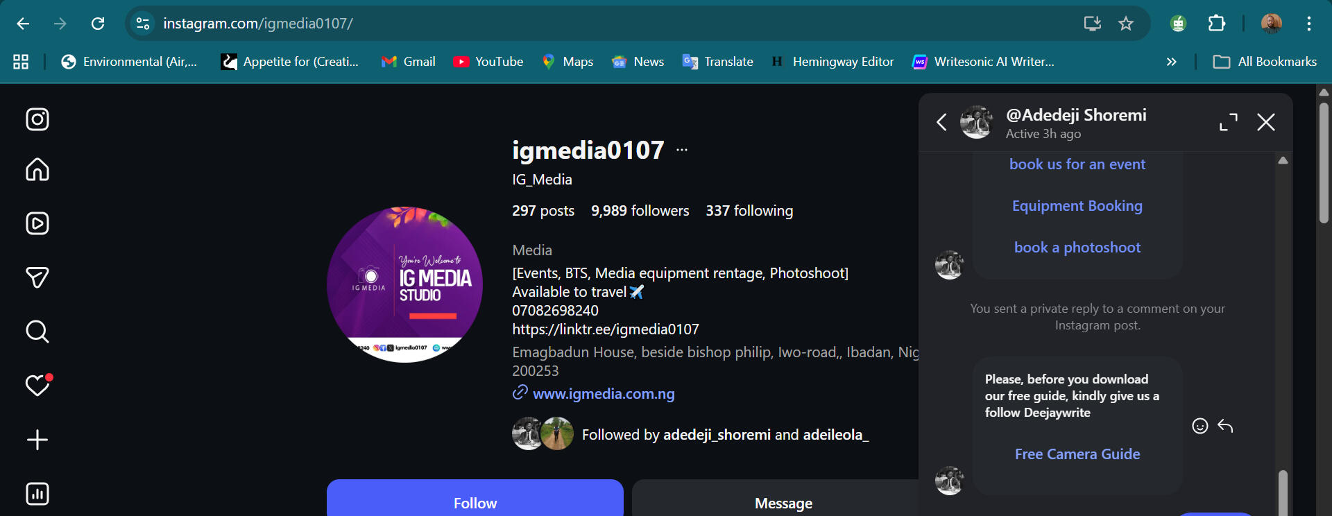 Once anyone comments they get a message to follow and link ➡️